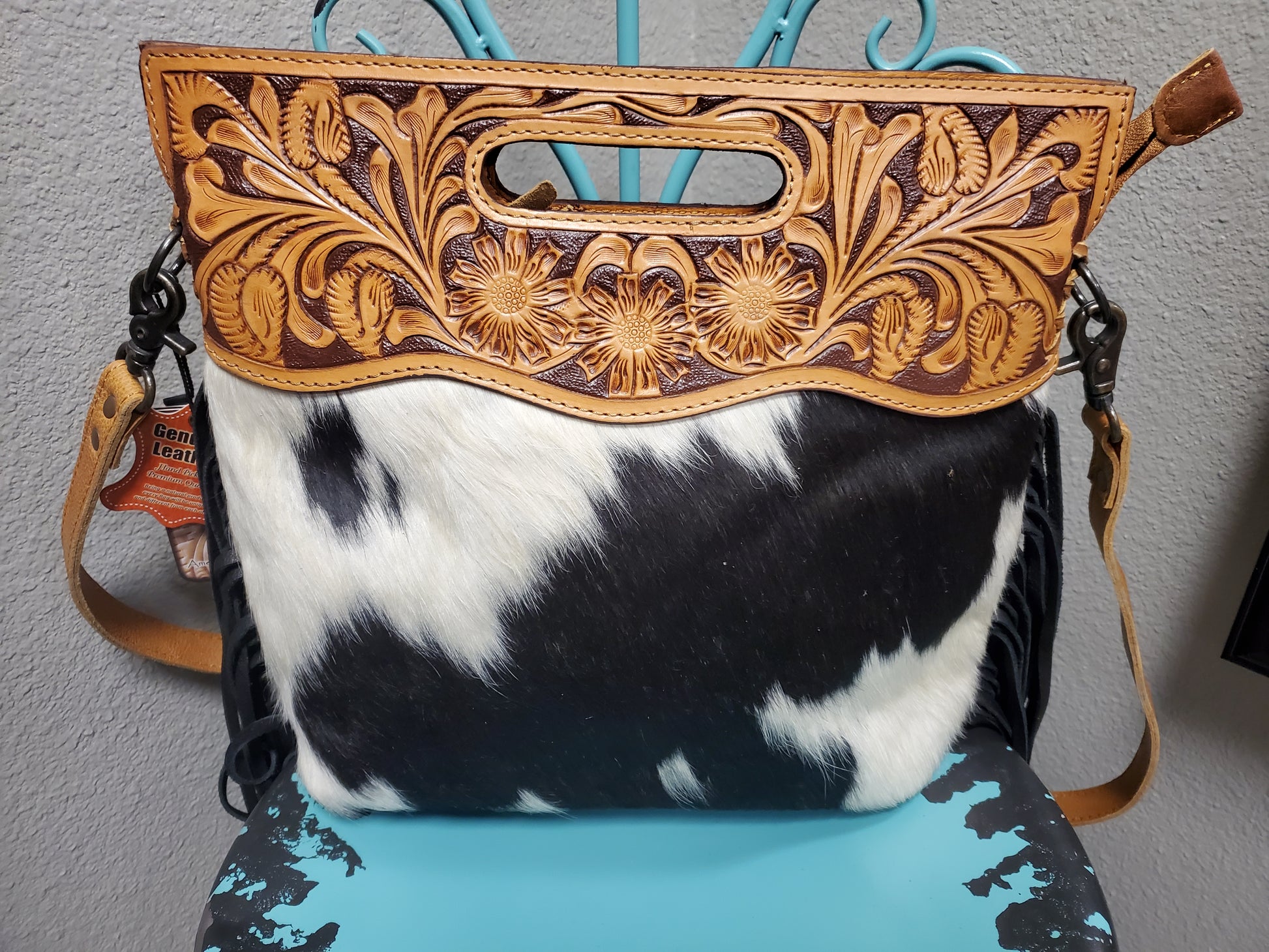 The handpicked cowhide hair-on genuine leather not only adds a soft and tactile element but also serves as an embellishment, enhancing its overall western appearance.
