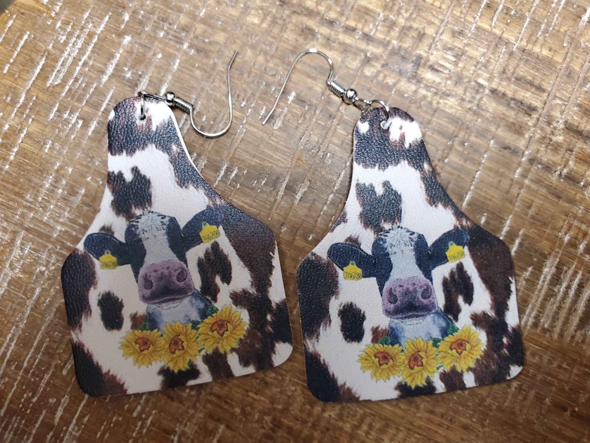 Cow and Sunflower Tag Earrings