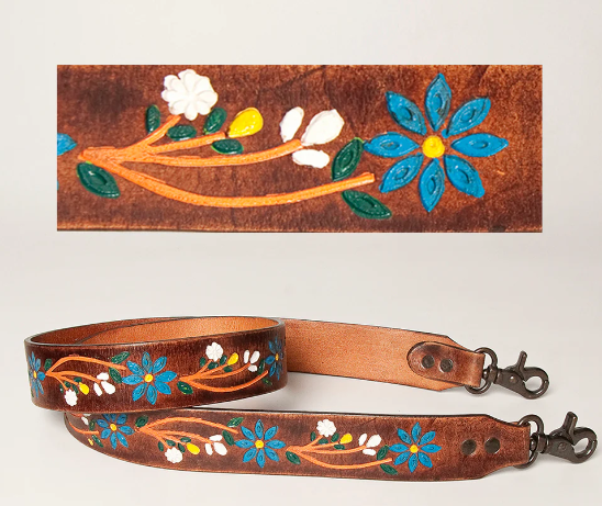 Detailed Hand tooled, carved and finally antique hand finished vegetable tanned American Cowhide Leather, exquisitely done by the finest artists and craftsmen in the country.