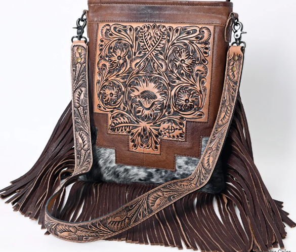 The handpicked cowhide hair-on genuine leather not only adds a soft and tactile element but also serves as an embellishment, enhancing its overall western appearance.