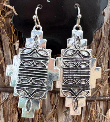 Spice up your outfit with these Stitched In Aztec Earrings! The cute aztec design is complemented by the unique bootstitch feature, and the matching necklace complete the look. Perfect for adding a touch of fun and style to any outfit.