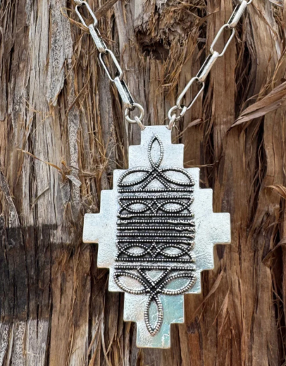 Looking for a cute and unique accessory? Look no further than our Stitched In Aztec Necklace! With a quirky bootstitch design, this necklace is sure to add a playful touch to any outfit. Plus, don't forget to complete the look with our matching earrings!